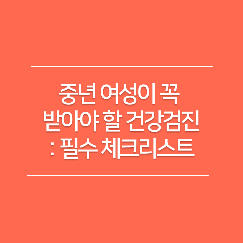 건강검진은 단순한 검사가 아니라, 건강한 삶을 유지하기 위한 필수적인 과정입니다. 특히, 중년 여성들은 신체 변화에 맞춰 필요한 검사를 받아야 하며, 조기에 이상 징후를 발견하면 치료 성공률을 높일 수 있습니다.